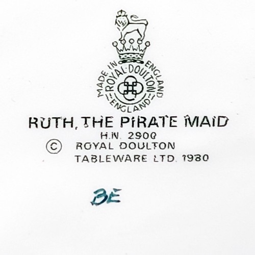 NEW IN BOX Royal Doulton figurine Ruth The Pirate Maid HN2900 was designed by William Harper and is one of the Gilbert and Sullivan series. She stands 11.75 inches tall and is bone china hand painted in England. She was designed in 1981 and in production until 1985