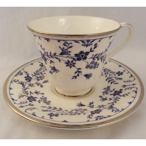 NEW NEVER USED Royal Doulton dinnerware Sapphire Blossom,Creamer 4" tall, 4.75" wide, 3.5" at the lip, bone china Platinum Band, made in England