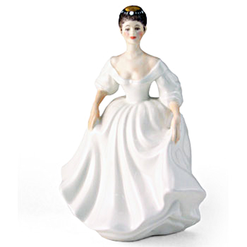 Royal Doulton figurine Angela HN2389 is one of the Vanity Fair Ladies designed by Peggy Davies. She was designed in 1983 and in production until 1986. She is bone china and hand painted in England. She stands 7.25 inches tall.