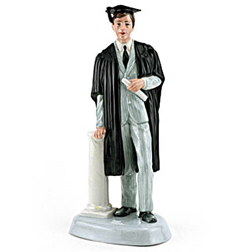 Here we have the Royal Doulton figurine Graduate HN3017. He is the male version and stands 9.25inches tall. He was designed by Pauline Parsons and in production from 1984-1992. He is bone china and hand painted in England