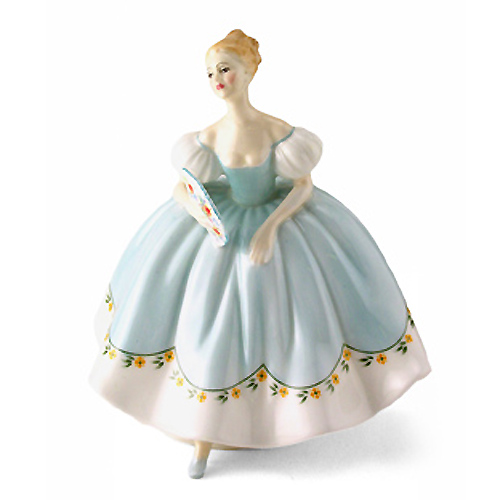 Royal Doulton figurine First Dance HN2803 was one of the Pretty Ladies designed by Peggy Davies and produced from 1977-1992. She stands 7.25inches tall and is bone china hand painted in England.
