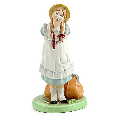 Royal Doulton figurine Pollyanna HN2965 was designed by Pauline Parsons in 1982 and was in production until 1985. She stands 6.5 inches tall and is bone china hand painted in England. She is one of the Characters from Children's Literature.