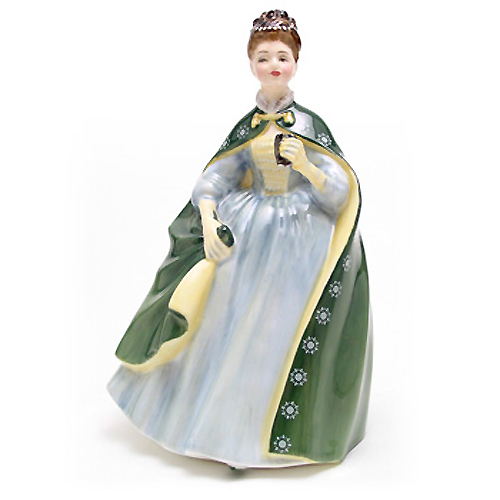 Royal Doulton figurine Premiere HN2343 was designed by Peggy Davies in 1969 and is 7.5 inches tall. She wears a green and yellow dress and carries opera glasses. She is bone china hand painted in England