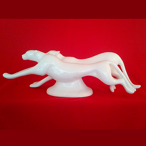 Royal Doulton figurine Running Wild HN4172 was designed by Robert Tabbenor in 2000 and was in production until 2002. These Cheetahs are white bone china hand painted in England. They measure 12 inches wide and 4 inches tall, part of the Images of Nature series.