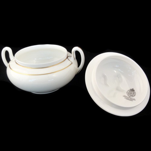 NEW NEVER USED Royal Worcester Dinnerware Contessa Covered Sugar Bowl 4.25" tall, 3.75" at the lip, 4.25" wide, White & Gold, bone china hand painted in England