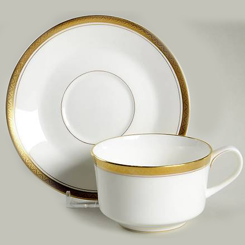 NEW NEVER USED Royal Worcester dinnerware Empire Cup & Saucer, 24kt Gold Band, bone china hand painted in England, 1967-1974