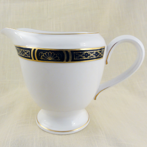 NEW NEVER USED Royal dinnerware Worcester Mountbatten Cobalt Creamer, 4" tall, 6" wide, 4" at the lip, bone china hand painted in England, 24kt Gold trim
