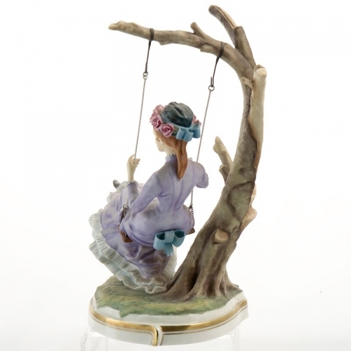 NEW NEVER SOLD Alice RW3887 of the Victorian series modelled by Ronald Van Ruyckevelt in 1972, #62 of this limited edition of 750, She is hand painted on bone china, and made in England,Young girl is on a swing, she is 8.5 inches tall