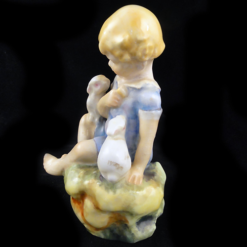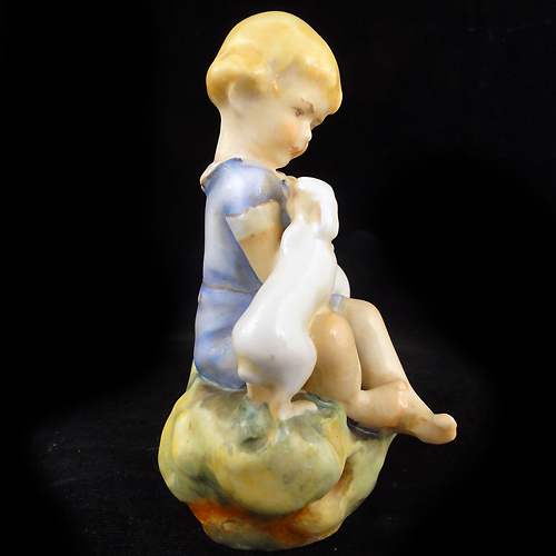NEW NEVER SOLD Royal Worcester figurine The Dandelion stands 4" tall and 2 .75" wide and 2.5" at the base, perfect condition, hand painted bone china made in England, designed by FG Doughty, circa 1950, boy with 2 rabbits