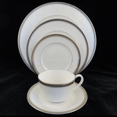 NEW NEVER USED Royal Worcester Dinnerware Baroness Rin Soup 9" diameter, bone china, Platinum Band, hand painted England