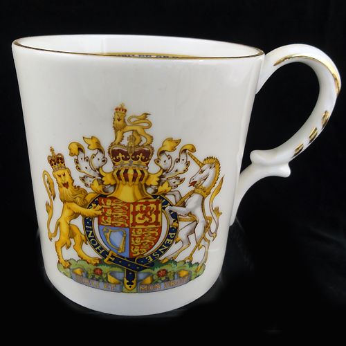 NEW NEVER SOLD OR USED Aynsley collectable Queen Elizabeth II Mug, Commemorating the Silver Jubilee 1952-1977, of the longest reigning monarch in the history of the United Kingdom, 3.3" tall, 4.5" wide, 3.25" at the lip, hand painted in England, Bone China