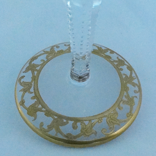 NEW NEVER USED Saint Louis crystal stemware Callot created for the Nancy Exhibition of 1908, this Flute Champagne is 7.5 inches tall, 2.25 inches dimeter at the lip, 2.75 dia at the base, manufactured in France, it is the oldest crystal manufacturer in Europe founded in 1586 in eastern France, mouth blown, and hand cut and etched the gold is applied by hand after the crystal has been etched in relief and then the glass is refired so the gold melds with the crystal and becomes one, it will never wear off, Crystal providor to Kings of Europe