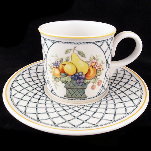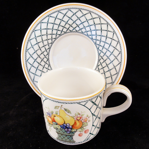 NEW NEVER SOLD Villeroy & Boch dinnerware, Basket, Breakfast Cup & Saucer, Cup is 3.2" tall and 3.4" diameter, Saucer is 7.2" diameter, Microwave Safe, Dishwasher safe, Made in Germany.
