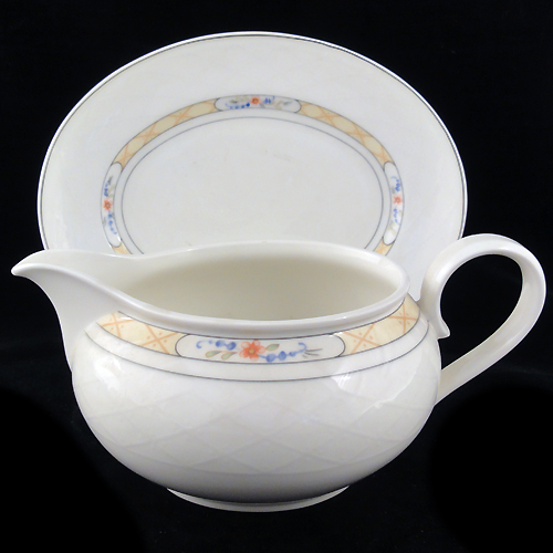 NEW NEVER SOLD Villeroy & Boch dinnerware, Orlando, Gravy & Stand, Boat is 3.5" tall, 7.25" long and 4" wide, the Stand is 8" long and 6.5" wide, Dishwasher safe, Bone china, Made in West Germany.