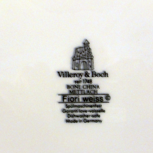 NEW NEVER SOLD Villeroy & Boch dinnerware, Fiori Weiss, Gravy & Stand, Gravy Boat is 4" tall, 8.25" long and 4.25" wide, Gravy stand is 9" long and 6" wide, Dishwasher safe, Mettlach, Bone china, Made in Germany.
