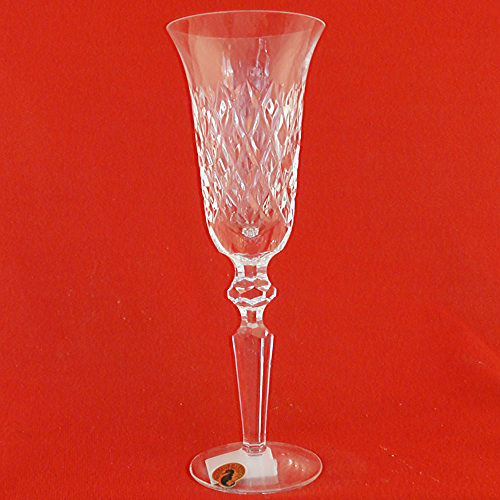 Here we have the beautiful Waterford Crosshaven Flute Champagne glass in lead crystal. It is hand blown and cut in Ireland. This item has a height of 8.75 inches and a width of 3 inches.