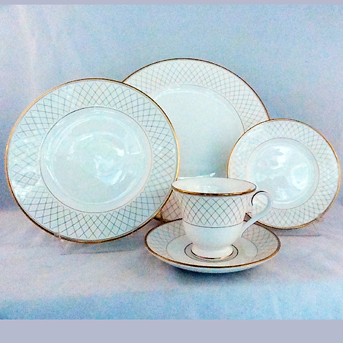 NEW NEVER USED Waterford dinnerware Crosshaven, bone china, hand decorated with 24kt gold in Ireland, Gravy Boat is 8 inches long,3 inches tall and 3.25 inches at the lip,Stand is 8.5 inches long and 5 inches wide