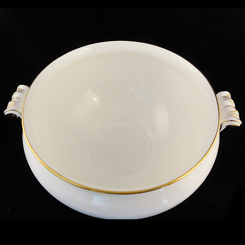 NEW NEVER USED BASE VERY SMALL MARK Wedgwood dinnerware Black Ulander Soup Tureen R4407 12" wide, 9" tall, 10" at the lip, bone china hand decorated 24kt gold made in England