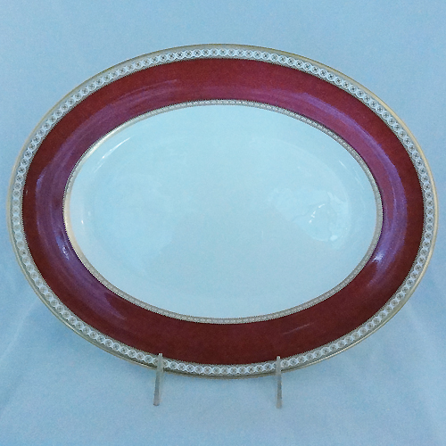 NEW NEVER USED Wedgwood dinnerware Ulander Powdered Ruby Platter Oval 13.5" long bone china gold border hand painted made in England