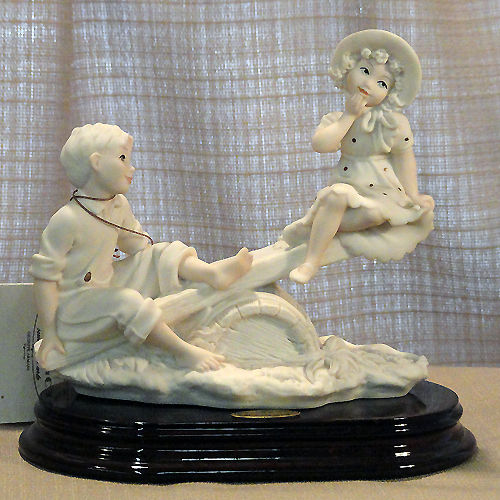 NEW NEVER SOLD Armani Figurine On The See Saw 0265F stands 6.5 inches tall and 7 inches wide. It is hand painted in Florence Italy and is porcelain.