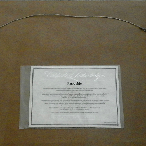 NEW NEVER UNWRAPPED Disney Sericel FRAMED Pinocchio Here's Your Apple 20.5 X 17.5 BLACK LAQUER WOOD FRAME , plexiglass over Sericel,Limited Edition to 5,000 for the world, designed in 1995, opening for artwork 13X10, comes with original certificate of authenticity