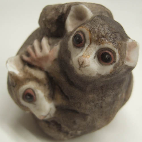 Here is a rare figurine of interwined wombats figurines. They are about 2.5 inches tall. They are a paperweight and can be viewed many directions. They are hand painted and made in England. They are porcelain figurines.