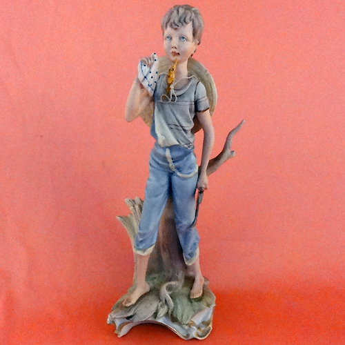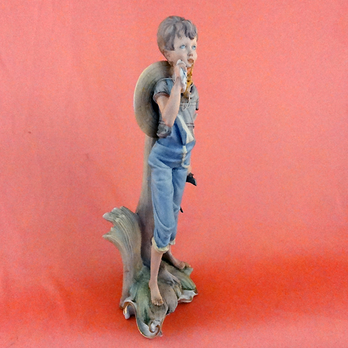 NEW NEVER SOLD Capodimonte figurine Boy With Hat, 9" tall, 3.5" wide, 2.5" a the base, hand painted in Florence Italy, porcelain