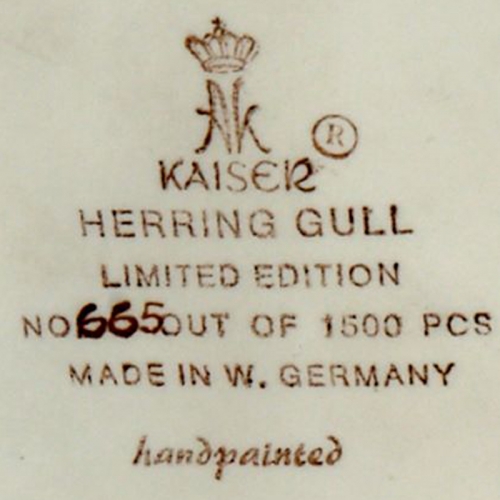 NEW NEVER SOLD Kaiser Porclelain figurine Herring Gull #665, hand painted in Germany, limited edition of 1500 for the world, wing span is 22 inches