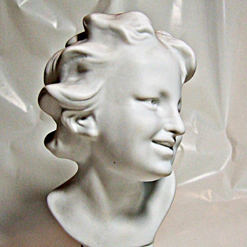This is the Tharaud Limoges bust of a girl in bisque. It is made in Limoges France circa 1960. She is 10 inches tall.