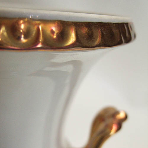 NEW NEVER SOLD Bareuther Waldsassen vase with 2 24KT GOLD handles. made in Bavaria Germany and is at least 60 years old, it is porcelain and we have more than one so they would be good as fire place decor, 8" tall, 5.6" at the top, 3.6" at the base
