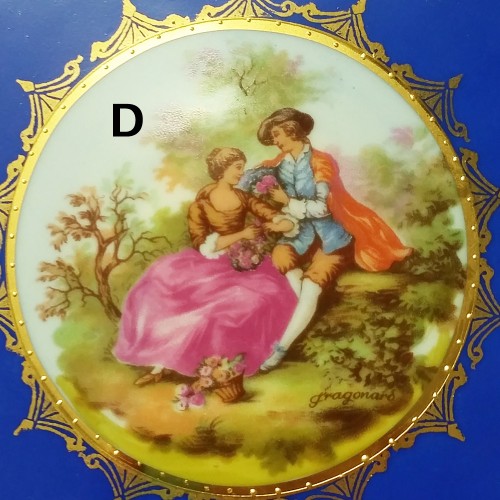 NEW NEVER USED J.K. Bavarian Love Story Blue Plate, made in Western Germany Love Story porcelain Plate,10.5" decorated with 24kt gold and has the painting by Fragonard depicted