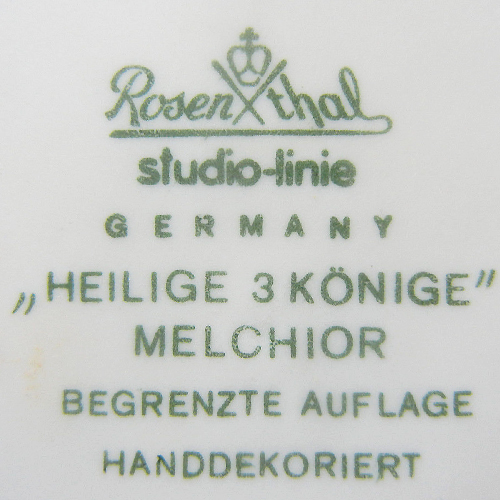 NEW NEVER SOLD Rosenthal Bjorn Wiinblad Christmas Plate 1973, Third Edition, Holy Kings Melchior, Fine china hand painted in Germany 22kt gold and cobalt, 11.5 inches in diameter