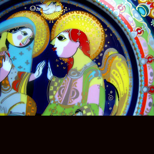 NEW NEVER SOLD Rosenthal Bjorn Wiinblad Christmas Plate 1975, Fifth Edition, Annunciation, Fine china hand painted in Germany 22kt gold and cobalt, 11.5 inches in diameter