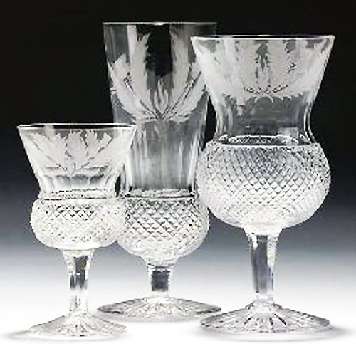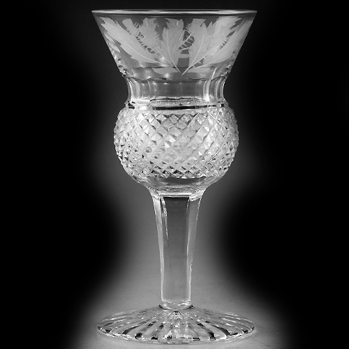 NEW NEVER USED Edinburgh Thistle stemware Liqueur 4.25" tall, 1.75" at the lip, mouth blown, hand cut, 24% lead, made in Scotland