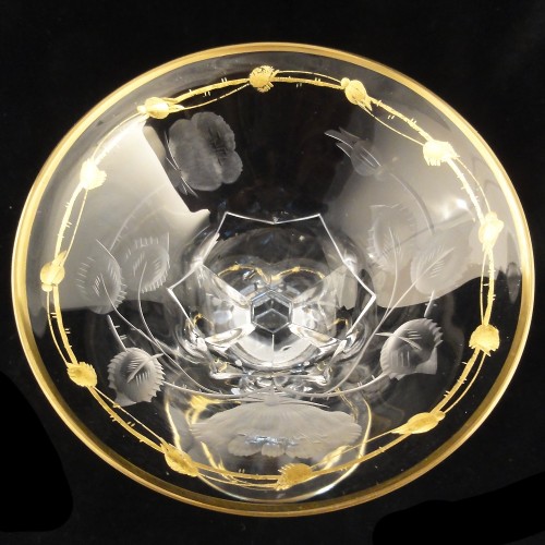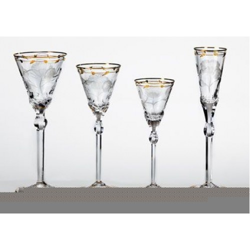NEW NEVER USED Moser crystal Paula Goblet 10.25 inches tall, 4 inches diameter at the rim, 24kt gold rim, hand cut Rose motif, no lead oxide, made in Czechoslovakia