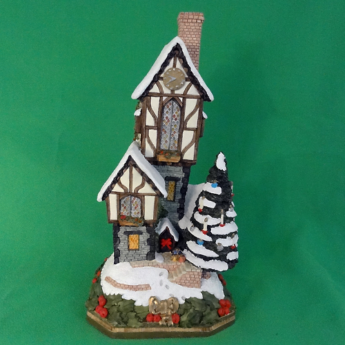 David Winter Cottage Christmastime Clock House was modelled in the John Hine Studios and is of hand painted porcelain. It stands 10 inches tall, and 4.25 inches wide.