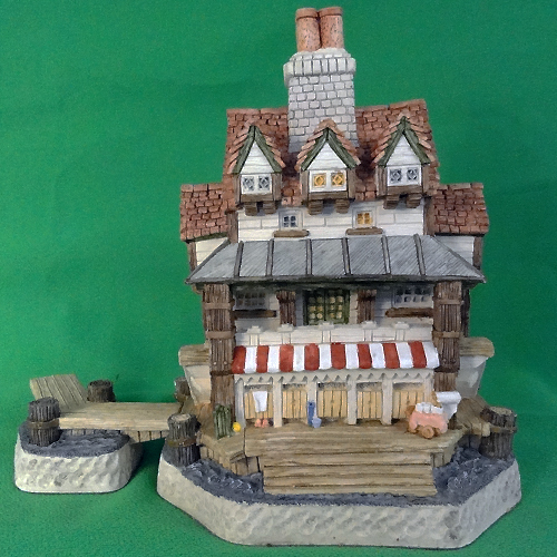 NEW IN BOX David Winter Cottage Lodging and Sunbathing Seaside Boardwalk was modelled in the John Hine Studios England and is of hand painted porcelain. It stands 7.25 inches tall, 5 inches wide, 5.5 inches long. 2 Piece set with dock made in 1995
