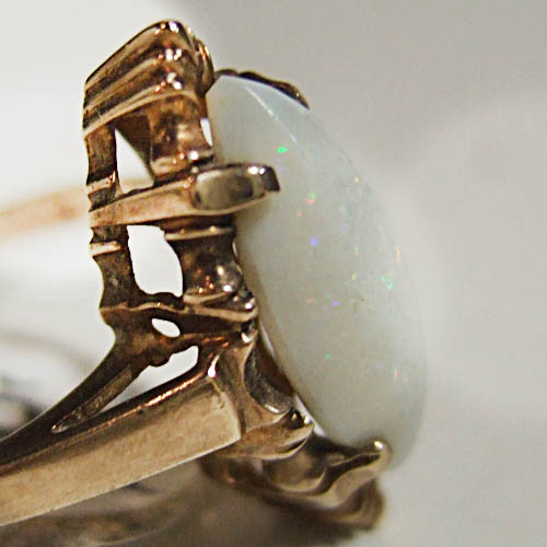 Opal marquis solitaire yellow gold ring. it is 10kt gold.
