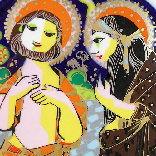 NEW NEVER SOLD Rosenthal Bjorn Wiinblad Christmas Plate 1982, Twelfth Edition, Christ is baprized by John the Baptist, Fine china hand painted in Germany 22kt gold and cobalt, 11.5 inches in diameter