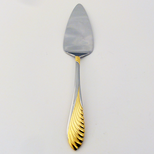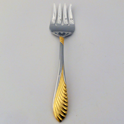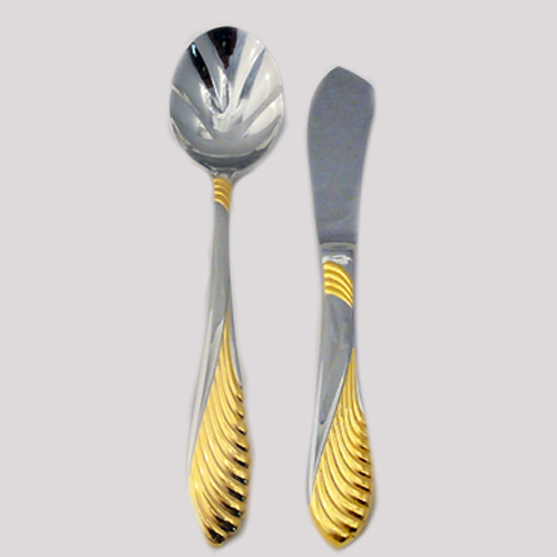 NEW NEVER USED Retroneu stainless flatware, Coquille Gold, 2 Piece Serving Set, Butter Knife 7", Sugar Spoon 6.25", 18/8 Stainless Steel.