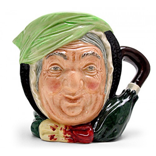 NEW NEVER USED Royal Doulton character jug Sairy Gamp D6045, mini, Designed by Charles Harradine in 1936 and in production until 1986, Hand painted and manufactured in England, 2.25" tall, Charles Dickens Characters Series