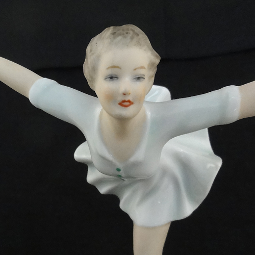 NEW NEVER SOLD Wallendorf figurine Figure Skater 6.75" tall, 7.25" wide, 7" long, East German, porcelain hand painted, gold blades and accents, design studio Schaubach Kuntz,crca 1950